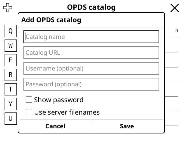 In the Catalog URL you need to type the OPDS url. The catalog name is up to your choice.