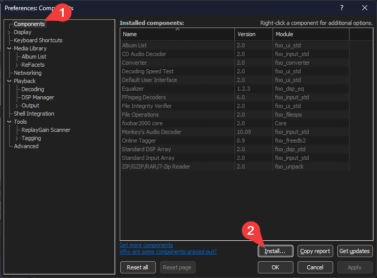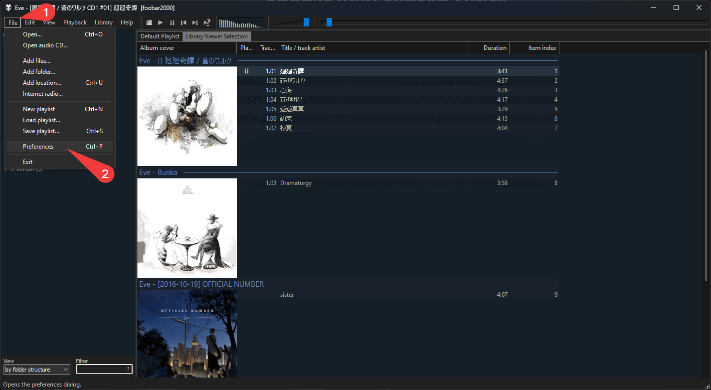 Foobar > File > Preferencesor click CTRL + P.