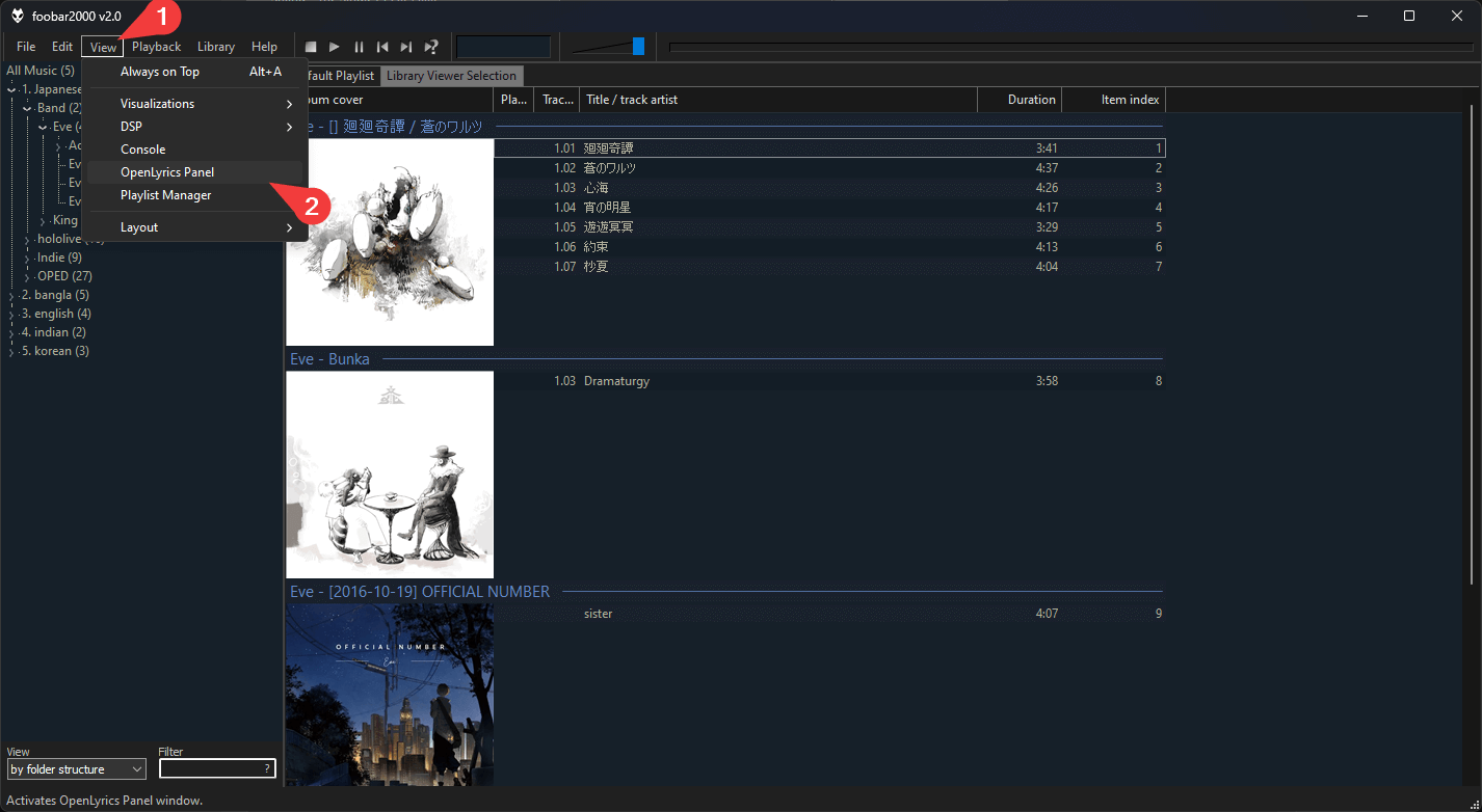 Foobar > View > OpenLyrics Panel